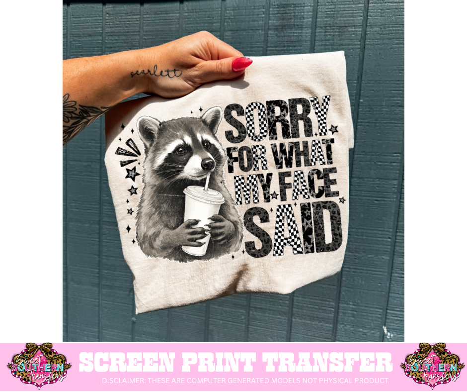 Sorry For What My Face Said Raccoon - Transfer